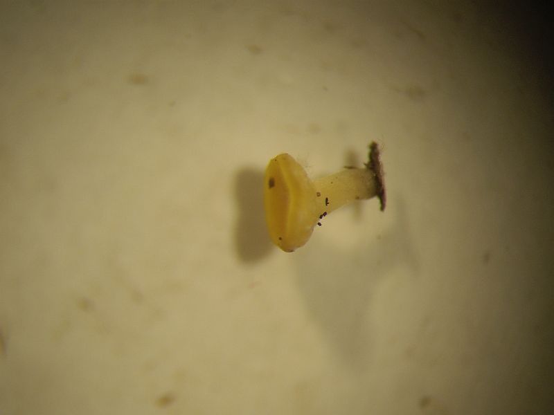 Dieser hier aber nicht. Von der Form her erinnert der mich sehr an Hymenoscyphus. Die Gattung kenne ich dank Ingo W und Björn Wergen. Habe aber bisher nur H. pseudoalbidus wissentlich gefunden.