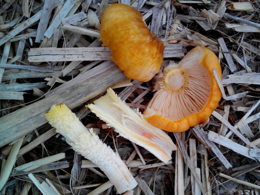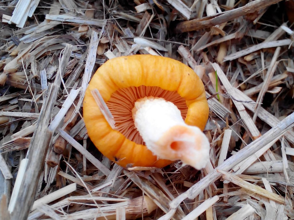 Er hat beim Spielen im Stroh folgende zwei Pilze entdeckt.