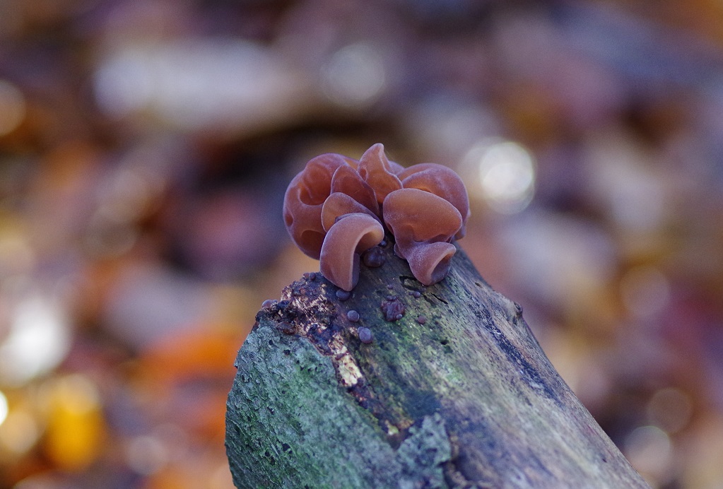 Auch ein Gallertbecher war schnell gefunden - mit gutem Auge ja bekanntlich ein Massenpilz im Spätherbst und Winter. Mangels Nebenfruchtform bleibt es allerdings bei Ascocoryne spec.