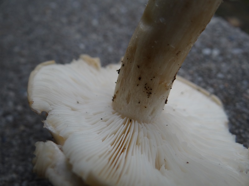 - Fruchtschicht: sehr engstehende Lamellen, nicht ausgebuchtet angewachsen oder herablaufend, sondern gerade anschließend bis fast frei (siehe Bilder)
