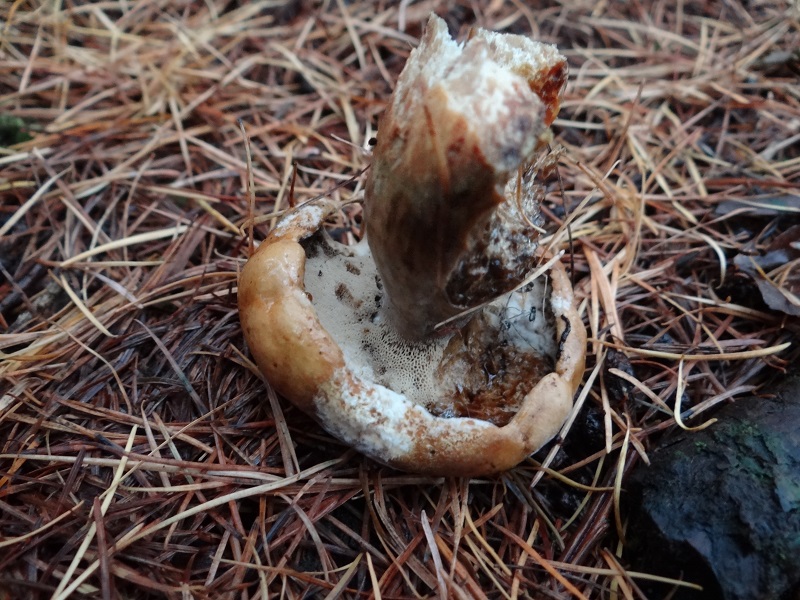 Den Grauen Lärchen-Röhrling habe ich, wie gesagt, auch schon ausgeschlossen. Die Ringreste müsste man noch sehen können. Den Sandröhrling habe ich bisher erst einmal gefunden, der war aber ohnehin auch nur die erste Assoziation, passte dennoch nicht ganz ins Bild.