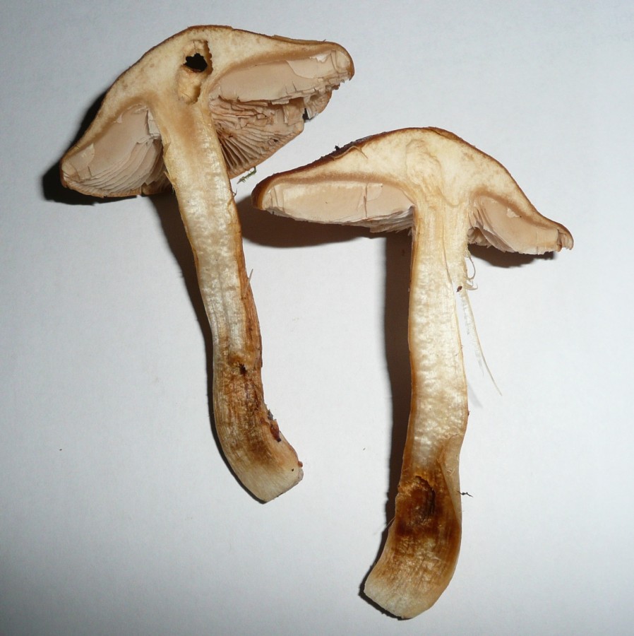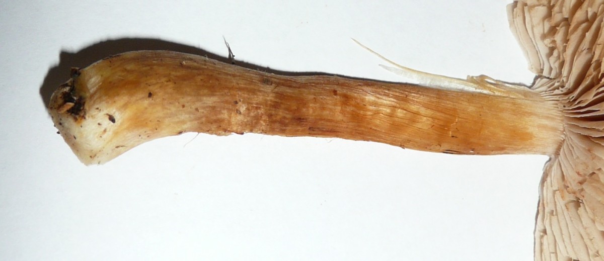 Stiel: bräunlich, faserig, leicht verdreht, Durchmesser ca. 1,5 cm