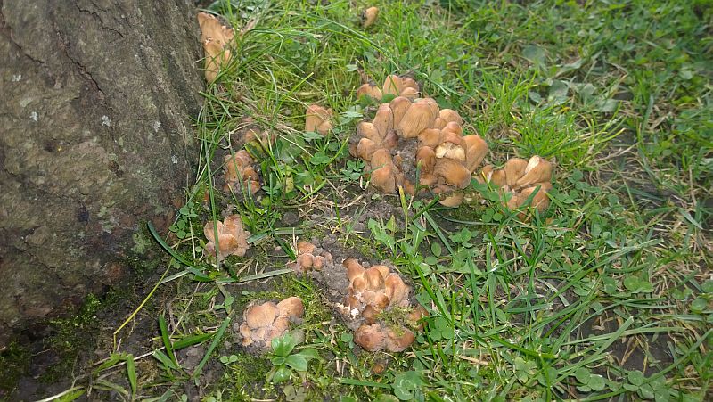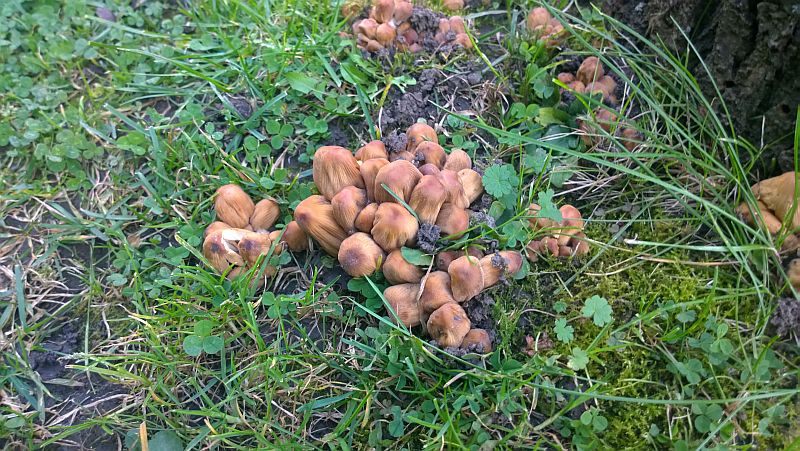 Am WE konnte ich neben den (fast schon obligatorischen) Tintlingen (wahrscheinlich COPRINUS MICACEUS) und den Zaunblättlingen