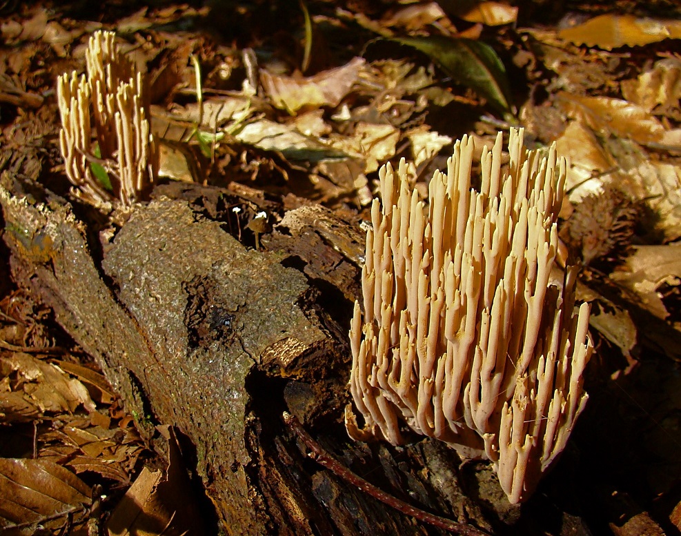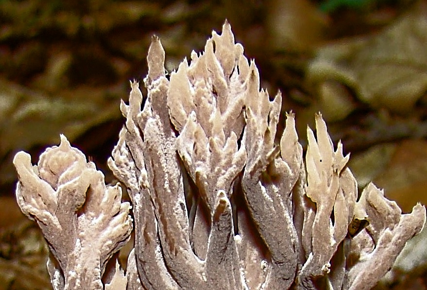 Zu Clavulina cinerea vs. Clavulina coralloides - das wird ja wirklich z.T. zu einer Art geworfen, ob zu Recht kann ich natürlich nicht einschätzen. Ich habe das Bild mal etwas nachgearbeitet, da kann man schon an den Zweigspitzen so kleine Kämmchen erkennen - ist es das was für coralloides als Abgrenzung gemeint ist?