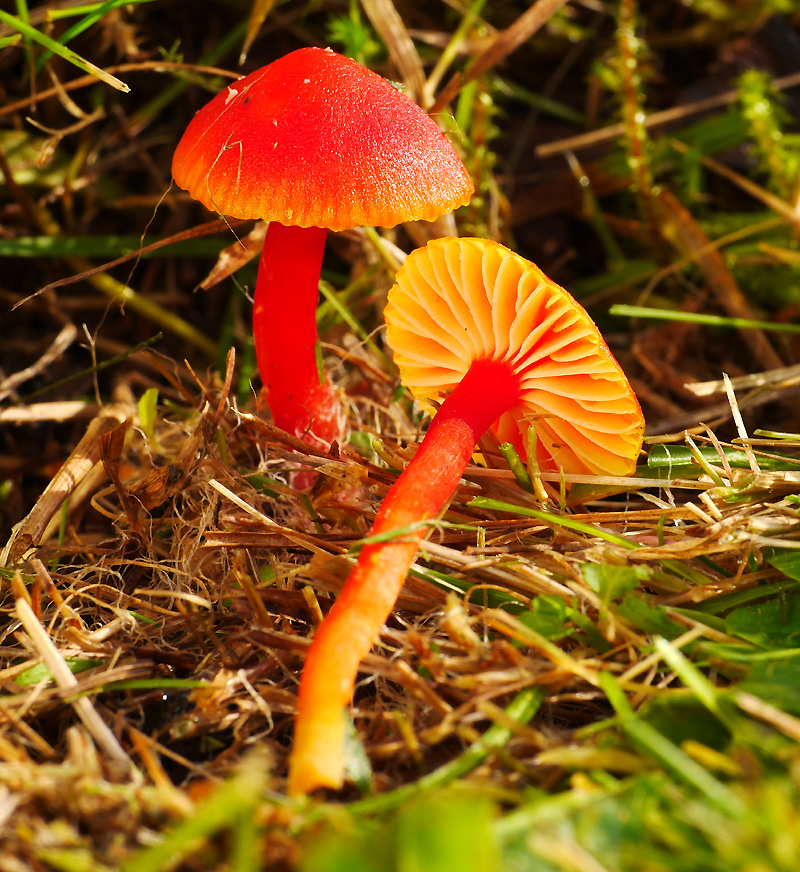 Mit einer sehr ähnlichen Optik wie die auf dem ersten Bild hatten wir auch mal H. mucronella (Bitterer Saftling) gefunden. Im Taunus, die kleinen Roten. Ich weiß nicht, ob du dich erinnerst.