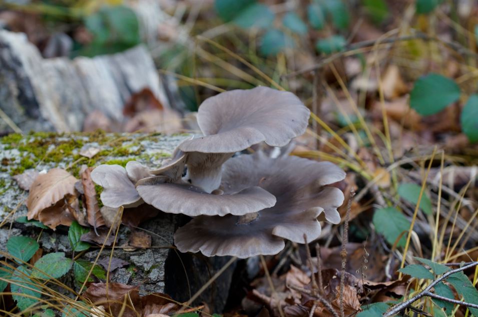 Austernseitlinge und Gelbstielige Muschelseitlinge in unmittelbarer Nachbarschaft