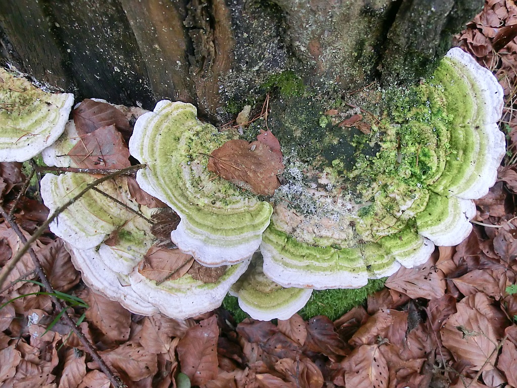 1. Der erste Kandidat - vermute eine Tramete......(Schmetterlingstramete? Aber in weiß-grün?