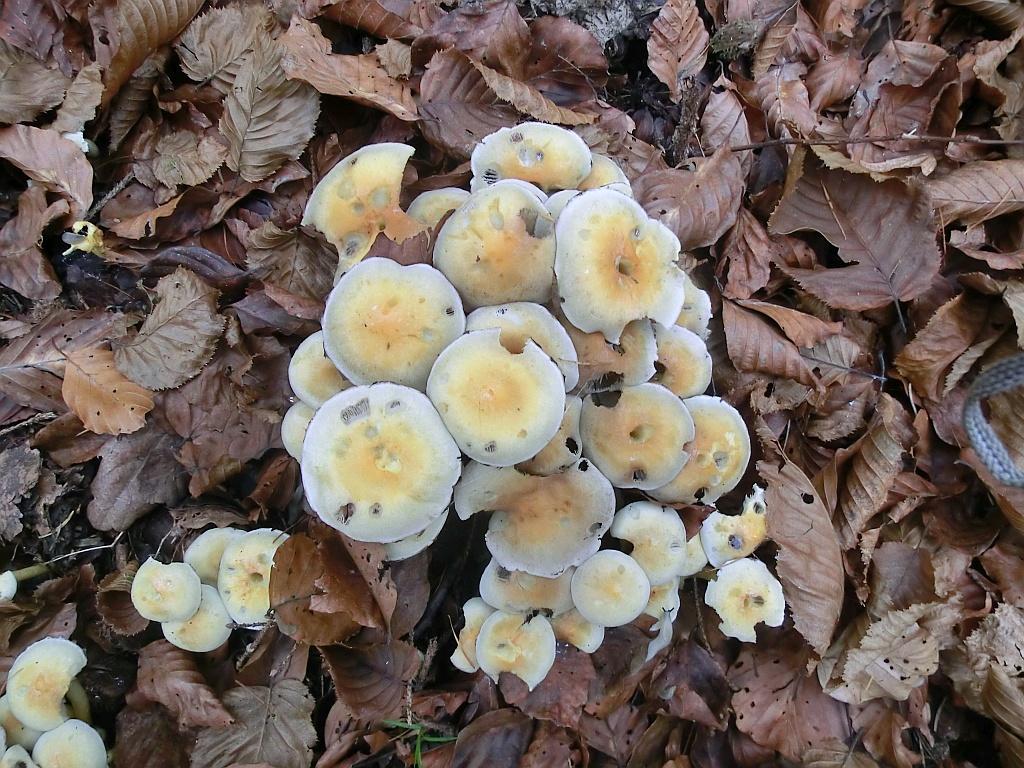 2. Ein Schwefelkopf? - vielleicht der Rauchblättrige? Vorwiegend Laubwald, roch angenehm, die Lamellen waren nicht grünlich....