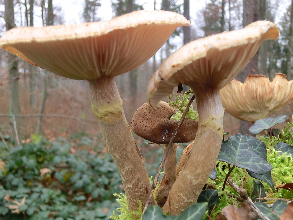 5. Diese Pilze sah ich ebenfalls auf einem Baumstumpf. Musste mich durch dorniges Gestrüpp quälen - um fest zu stellen, dass es vermutlich alte Hallimasche sind.(Tja, die Neugier halt:D)