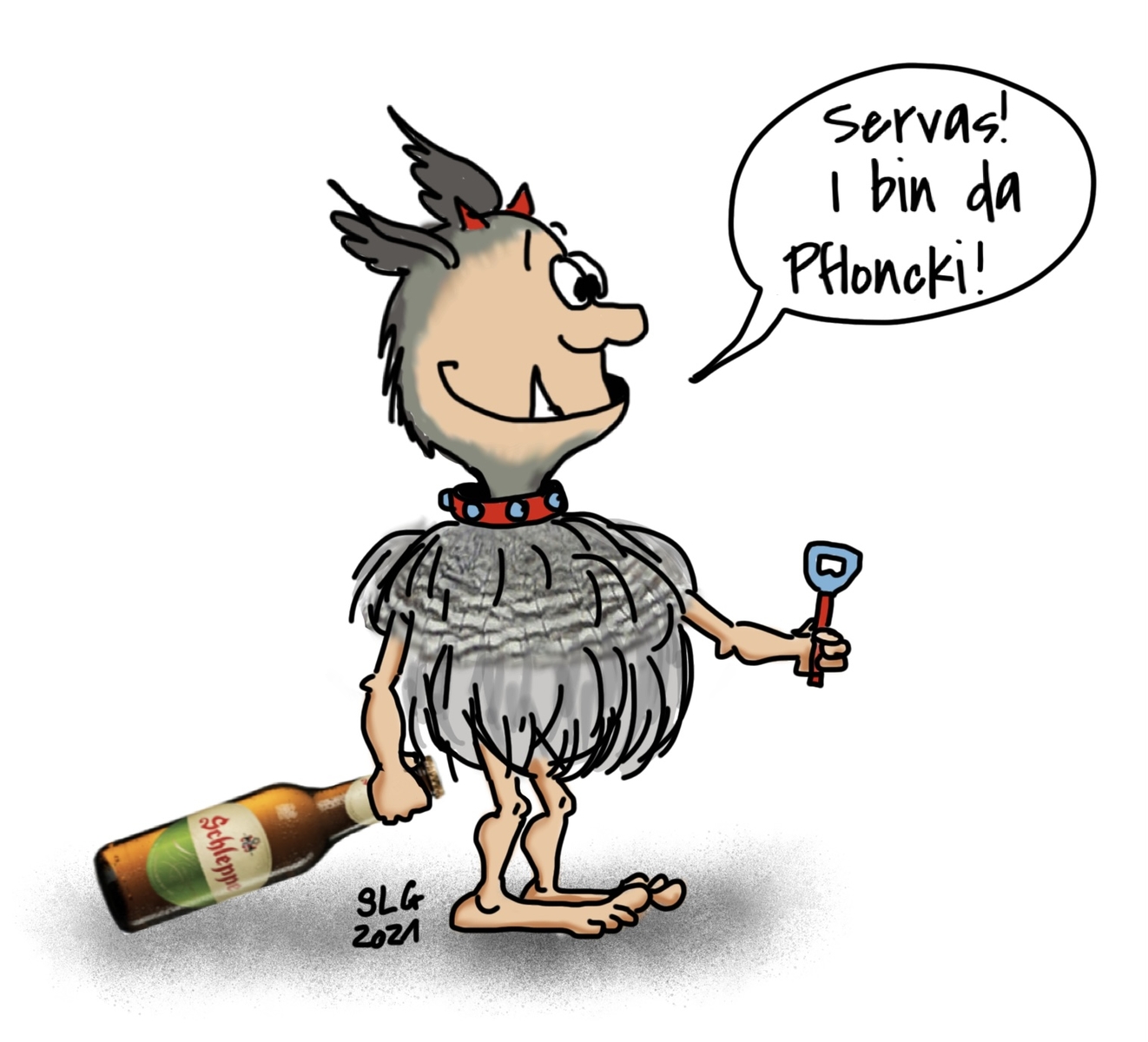 Gegen Mitternacht wird's gewesen sein, da hat er, keine Ahnung wie, jedenfalls stand plötzlich der Hiasl in der Tür. Dem Matthias sein Gnolmi, mit einem leeren Bierkrug in der Hand. Der kann genausowas in die Augen schauen, wusste ich nicht; woher auch.