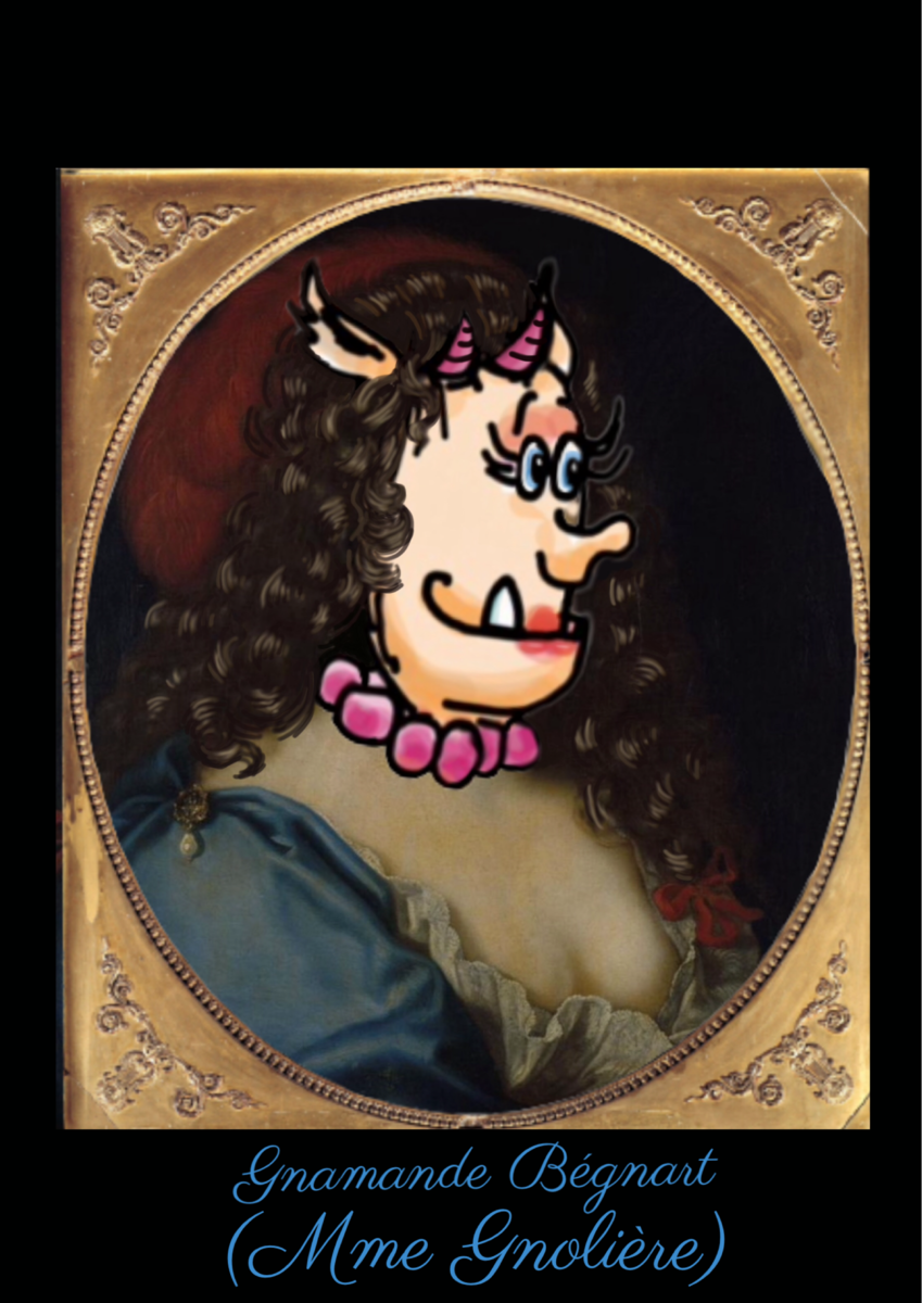 Ja, liebe Wutzi, die Gattin ist bekannt. Es ist die Schauspielerin Gnamande Bégnart, die Meista Gnolière in seinen Gnolmödien (in seinem eigenen Schmiantheata, dem "Théâta de Graisse") so entzückend fand, daß er sie ehelichte, um so ein "Monopol" auf ihre Darstellungskünste und ihre weiteren offensichtlichen und verborgenen Vorzüge zu haben...