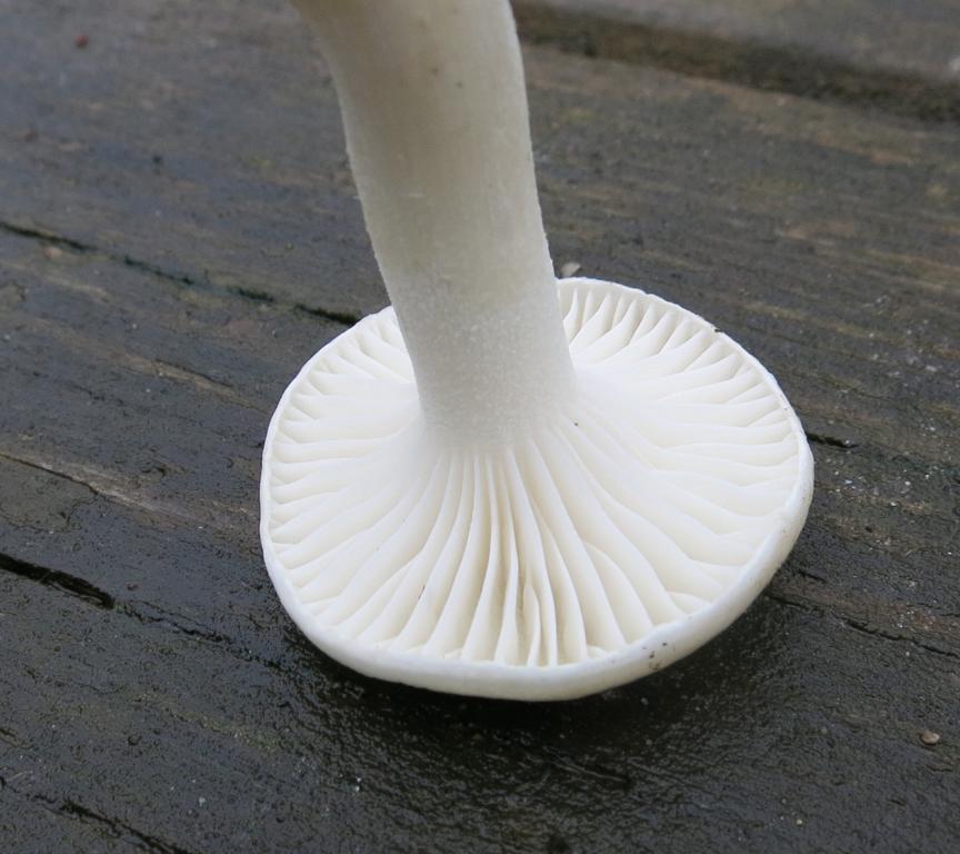 Lamellen wiß, leicht bogig etwas herablaufend leicht entfernt mit Zwischenlamellen.