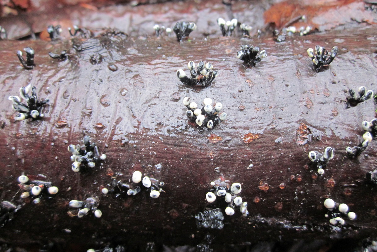 das ist Crinula caliciiforme, die Anamorphe von Holwaya mucida, dem Konidien-Schwarzbecher.