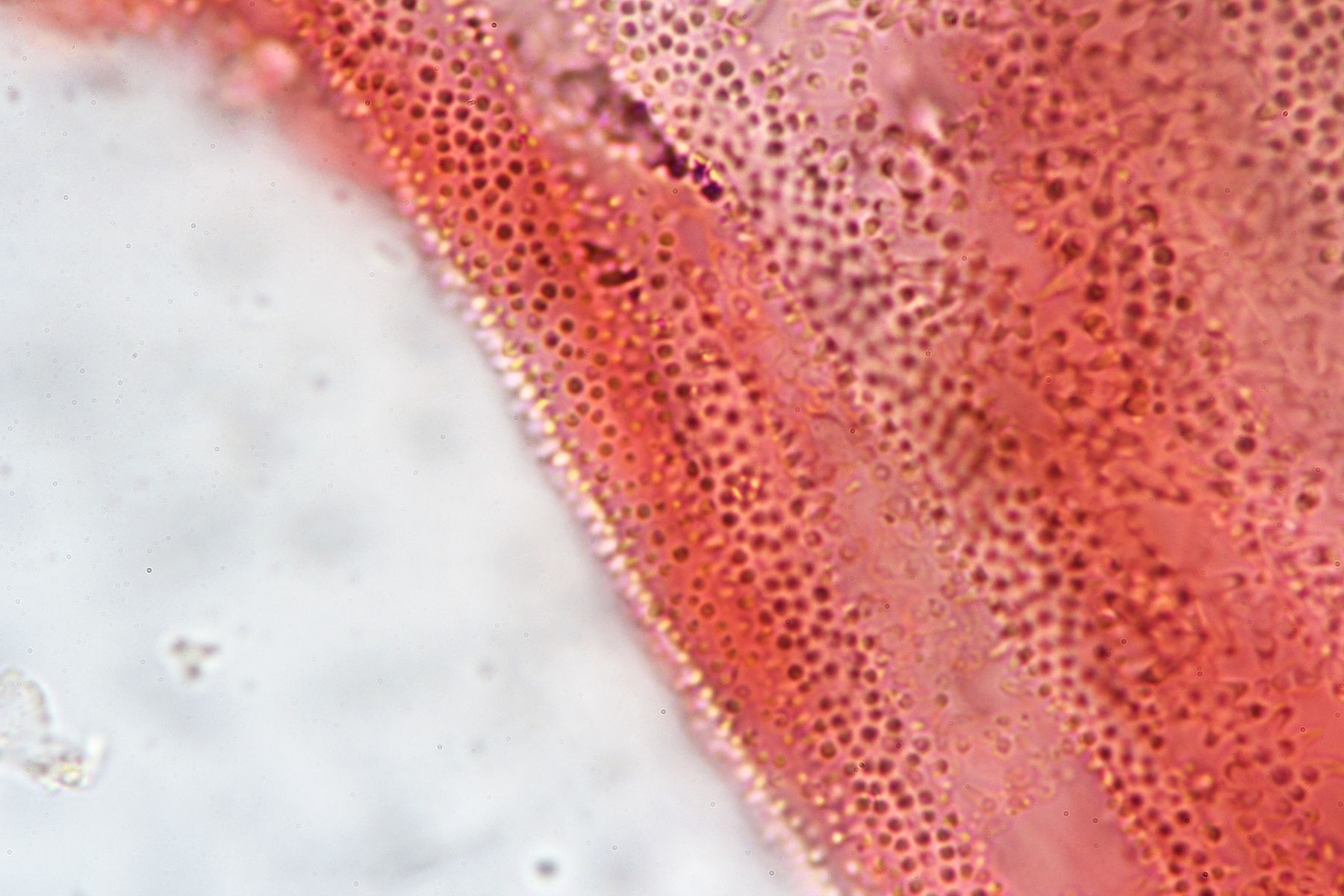 Verwechslungen: Wegen des Standorts und der Färbung ist die Art auch makroskopisch problemlos erkennbar.