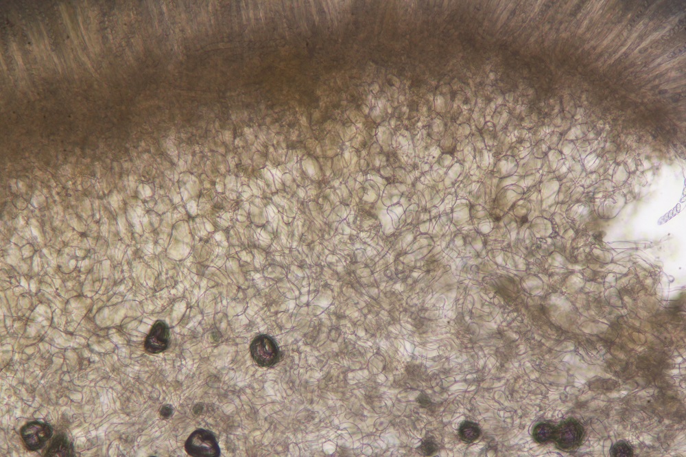 Wäre trozu der roten Punkte und dem Schimmer aber nicht schlecht, noch ein paar Mikros zu haben, da die anderen Arten in der Gattung eben auch knifflig sind. Und da kommt man ohne Mikros nicht weit, wenn auch dabei eine gute Makroskopie unerlässlich ist.