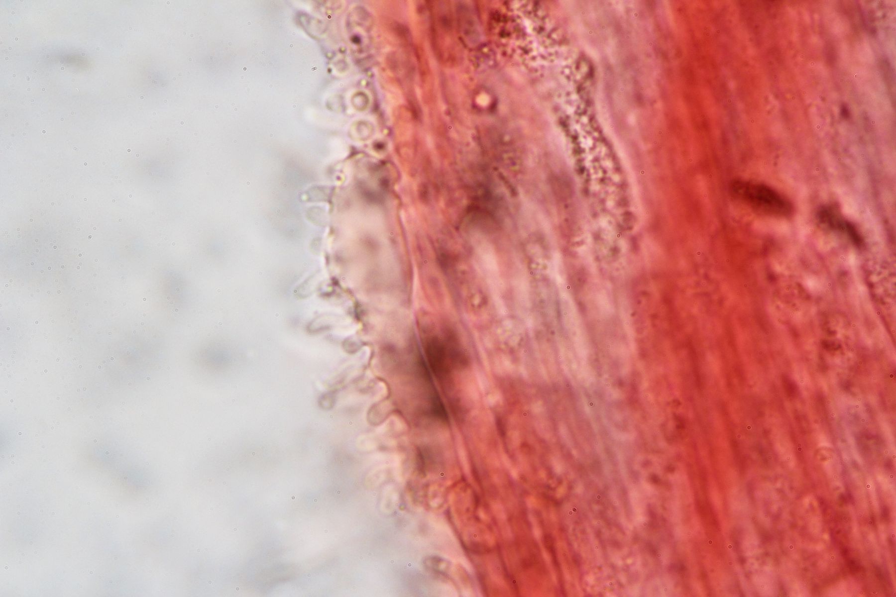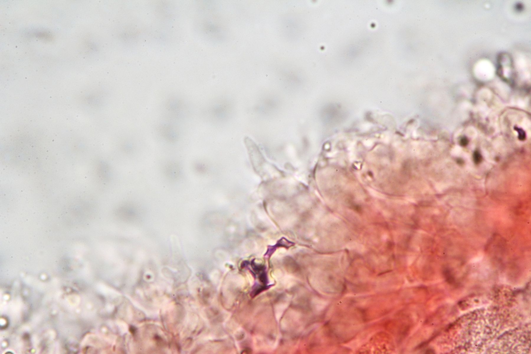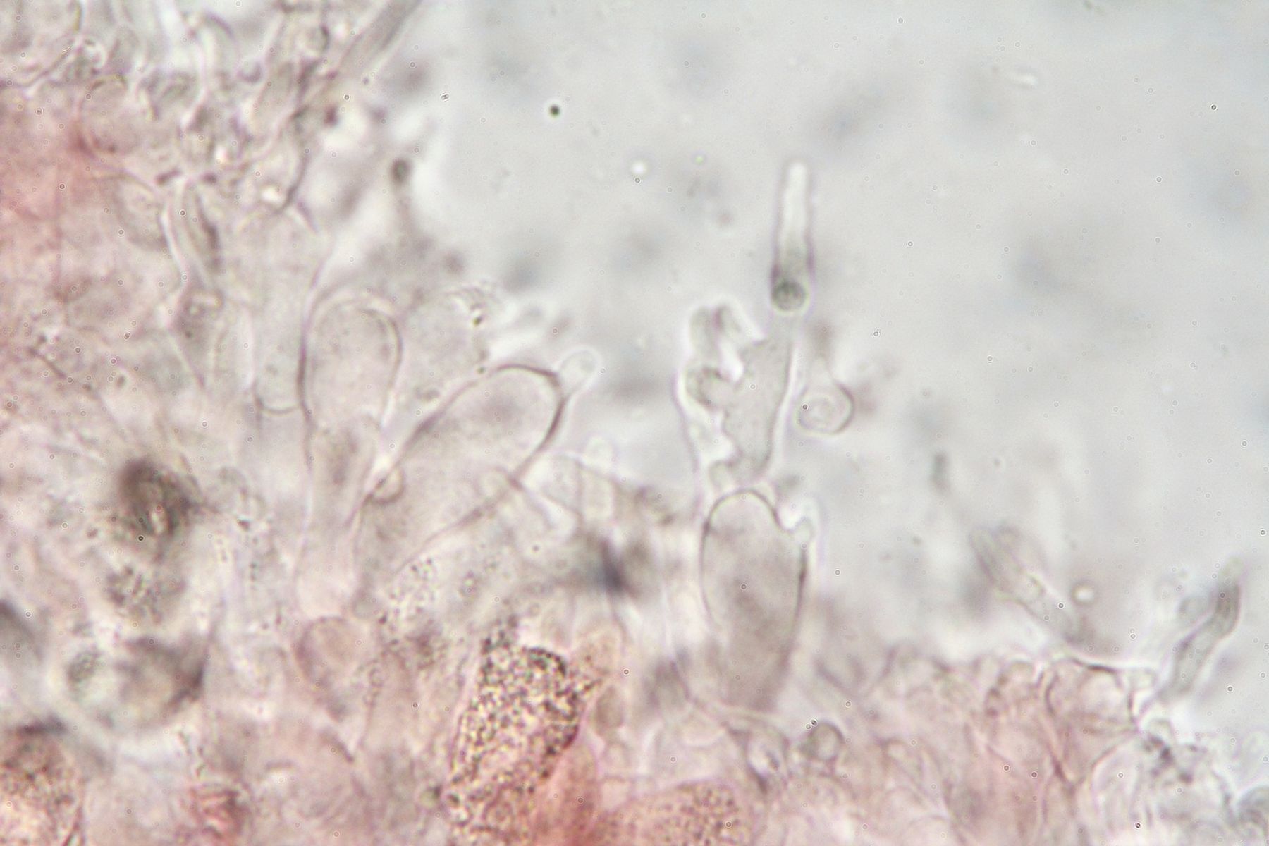 Cheilozystiden mit rotbraunem Inhalt, apikal unregelmäßig verzweigt.
