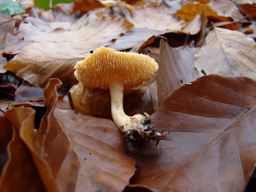 H. repandum und rufescens habe ich beide diesen Herbst schon gefunden, an dem hier irritiert mich allerdings, dass er so extrem schmächtig ist. Höhe max. 3cm, Hut ca. 2,5cm, Stiel max. 5 mm im Durchmesser. Außerdem sind die Stacheln nicht spröde sondern selbst jetzt nach einem Tag getrocknet fast samtig weich. Geruch übrigens sehr angenehm pilzig, auch jetzt noch trocken.