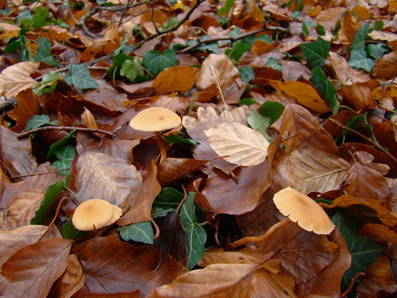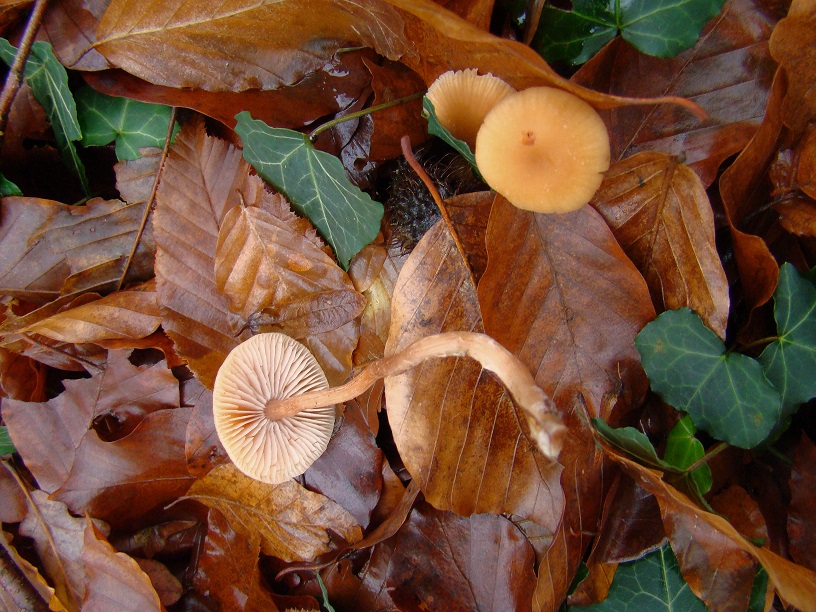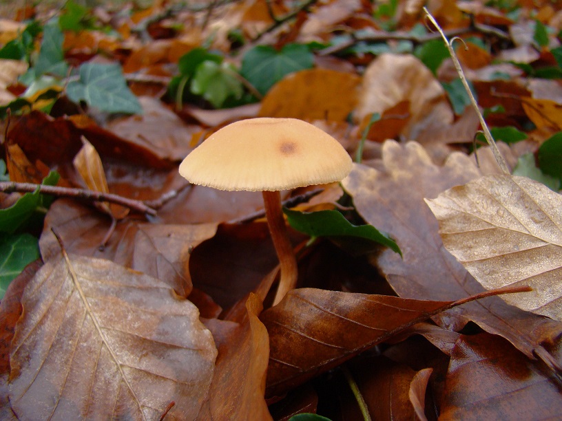 • Diesen hier fand ich im Buchenstreu, Stiel auffällig lang, ~8cm, Hut klein, ~2cm. Geruch auch etwas eigenartig.
