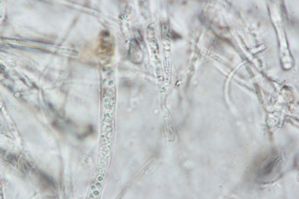 Mikroskopisch fällt schnell die 4-Sporigkeit auf und die eingeschnürten, reichlich ölhaltigen Sporen.