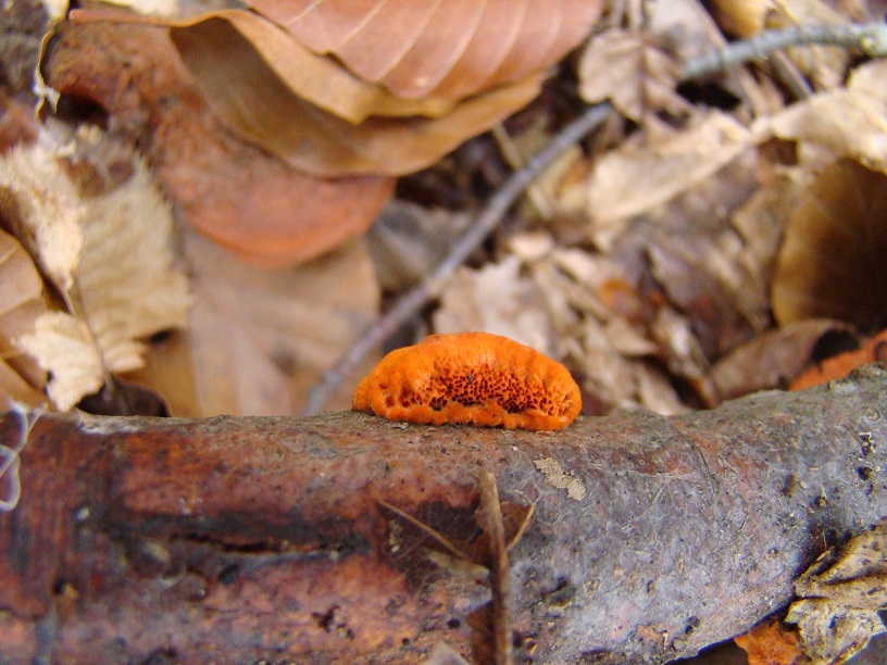 2 - Hier und diesmal wohl wirklich leuchtend Zinnoberrot, jetzt wohl wirklich Pycnoporus cinnabarinus (nachdem mein erster Versuch mit dieser Art daneben ging - dieser endete dank der Hinweise von Ulla & Pablo bei Pycnoporellus fulgens - was natürlich noch viel netter war, als Einstieg beim 2. Beitrag):