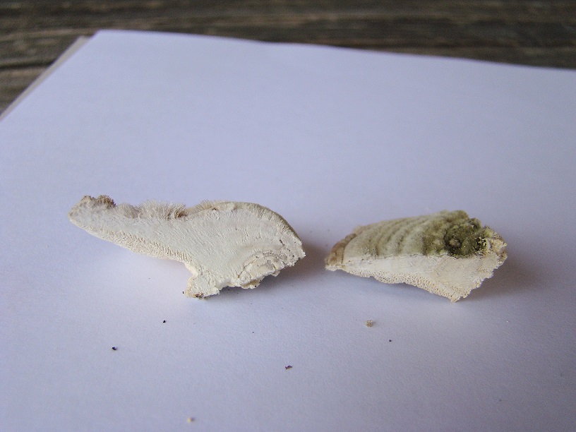 Auch ist insbesondere am Schnittbild überhaupt nichts bräunliches zu erkennen, auch da sehen beide für mich identisch aus, spricht also ziemlich klar gegen Coriolopsis trogii.