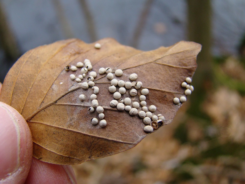 Gefunden gestern auf dem letzten Spaziergang vor dem Schnee an der Lauter / Grenze zum Elsass auf einem Buchenblatt.