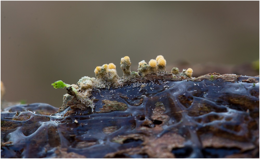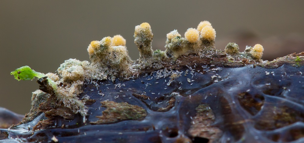 Die kleinen verstreuten Eiszapfenartigen Teile, das sind gefrorene Sporen.