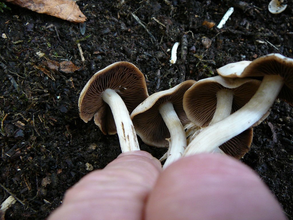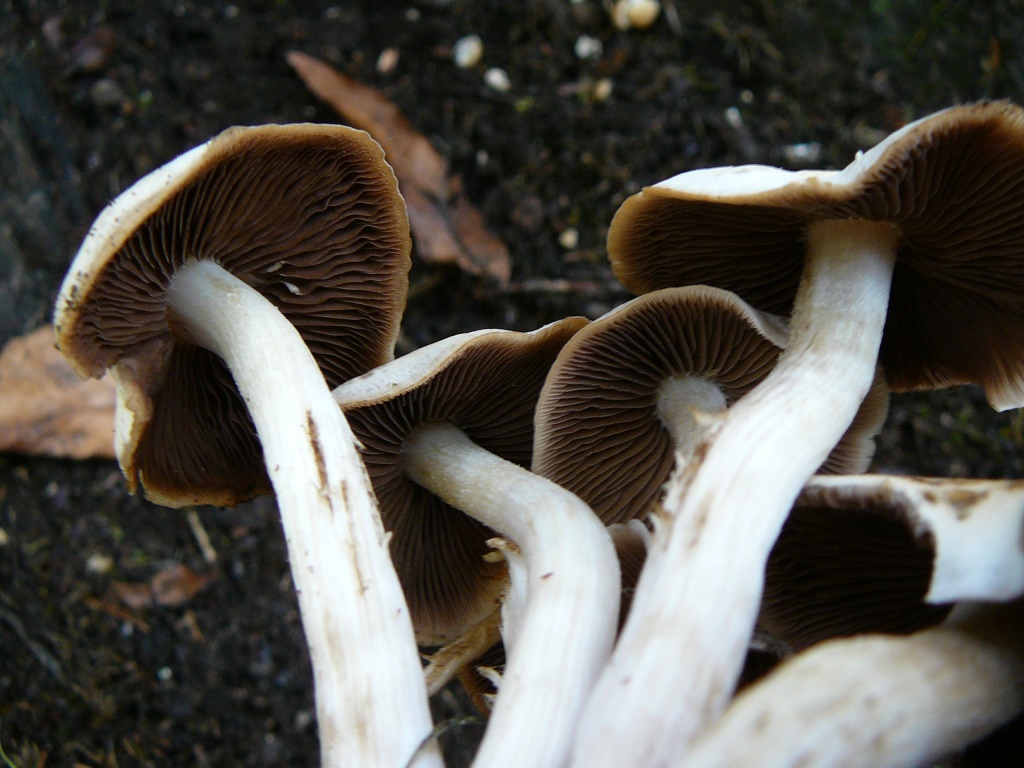 Ich hätte da auch starke Zweifel an Psathyrella multipedata. Die Art sieht nach meiner Erfahrung im Alter anders aus, mit dünneren, relativ geraden, zerbrechlichen Stielen, eher konisch - glockig bleibendem Hut, der an den Rändern zum radialen Aufreißen tendiert, nicht aber dazu, wellig zu verbiegen.An einen Faserling denke ich aber durchaus.
