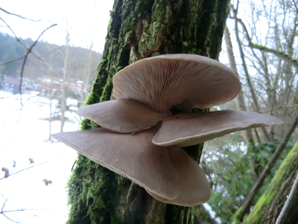 Austernseitling auf Holunder wiederum mit anderer Hutfarbe wie die vor einigen Tagen!