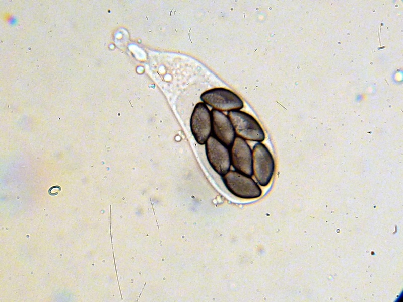 Es sind keine intrazellulären Pigmente zu sehen. Die Sporencluster sind in allen Altersstadien lose. Das Epispor ist fein granuliert und löst sich sehr leicht ab. Alleine dadurch sollte sich S. eleutherosporus doch schon von ähnlichen Arten unterscheiden, oder...?
