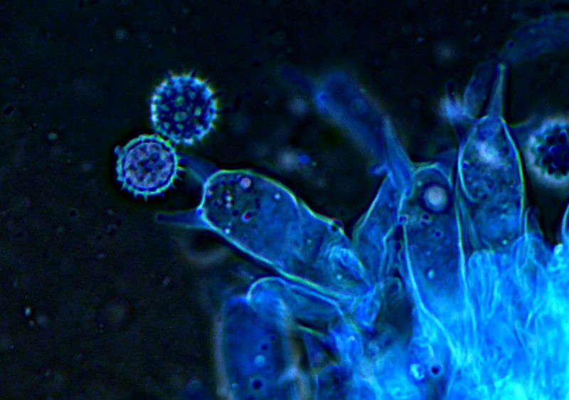 Evtl. könnte man damit auch feine Ornamente und Strukturen von sehr kleinen, hyalinen Sporen besser zur Geltung kommen lassen, damit werd ich jedenfalls weiter experimentieren. Zudem sieht das ja auch optisch sehr ansprechend aus, wenn auch erst mal ungewohnt.