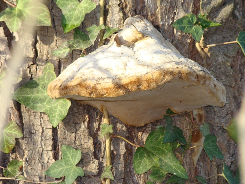 In der 6 sehe ich den Flachen Lackporling (Ganoderma applanatum). Bei den Bildern ist gut zu sehen, dass Ganoderma Fremdkörper im Wachstum mit einschließt. Auf der Fruchtschicht hättest du gut malen können, der Untergrund hätte satt schokobraun sein sollen.