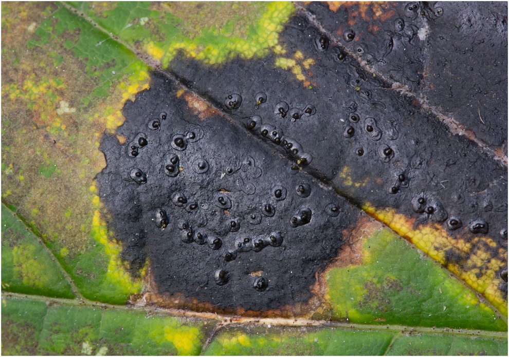 Rhytisma acerinum am Ahornblatt