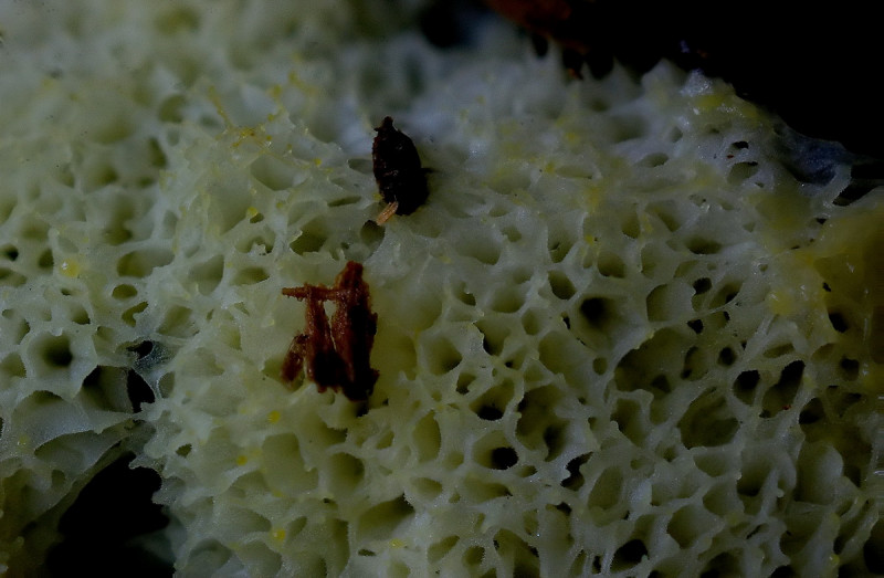 Bei Ceratiomyxa fruticulosa var. porioides besteht die Sporophore aus 0,1-0,5 mm großen Poren: