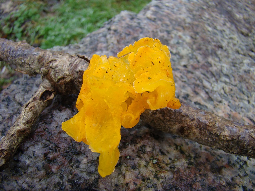 Zu diesem leuchtend gelben schlabbrigen habe ich aber überhaupt keine Idee. Ich habe ihn erstmal nicht bei den Schleimis eingestellt, da er doch irgendwie Struktur hat und auch zu Hause dann aus dem Ast ausgebrochen war, da war dann auch sowas wie eine Anwuchsstelle zu sehen.
