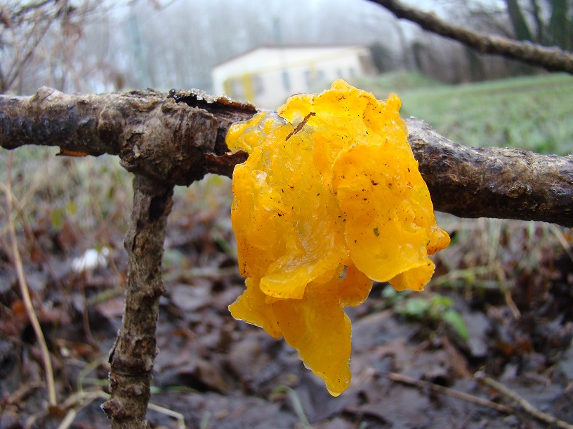 Zu diesem leuchtend gelben schlabbrigen habe ich aber überhaupt keine Idee. Ich habe ihn erstmal nicht bei den Schleimis eingestellt, da er doch irgendwie Struktur hat und auch zu Hause dann aus dem Ast ausgebrochen war, da war dann auch sowas wie eine Anwuchsstelle zu sehen.