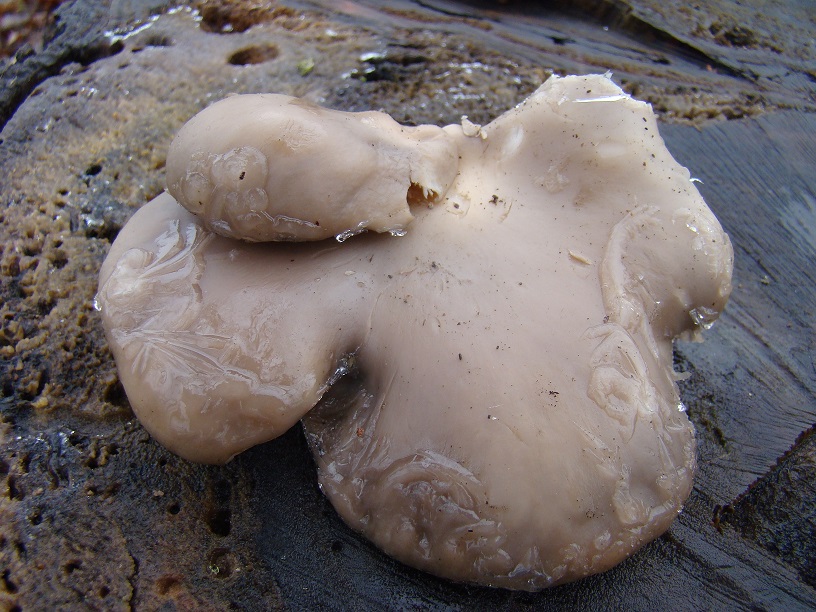 Also 4 cm, das ist schon eine Hausnummer. Da wärst du dann schon richtig mit den Gedanken bei Crepidotus mollis (Gallertfleischiges Stummelfüßchen):