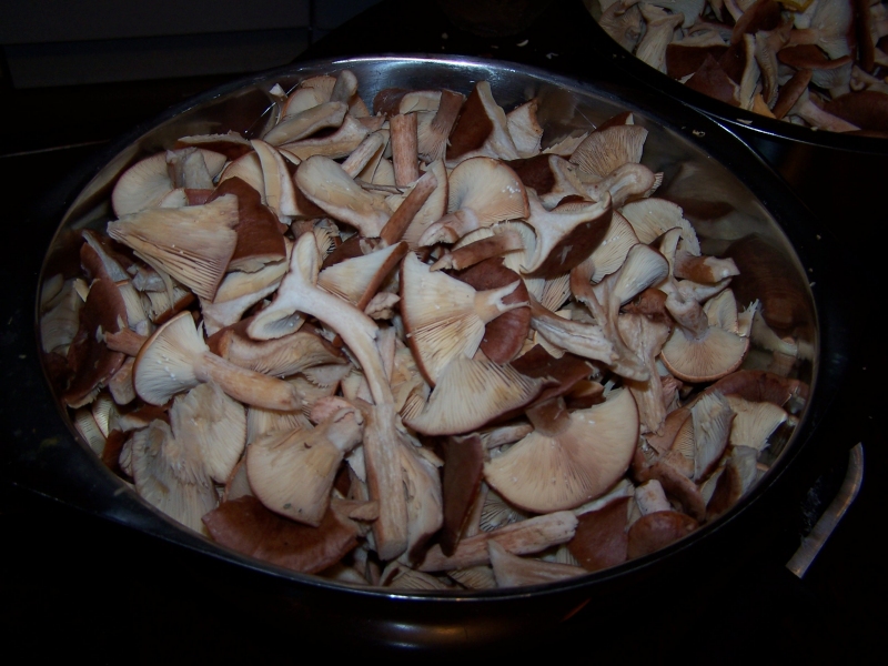 Gefunden haben wir Massen von dem im Anhang gezeigten Pilzen. Zu Hause wurden diese geschnitten und mit groben Salz in Gläsern konserviert.