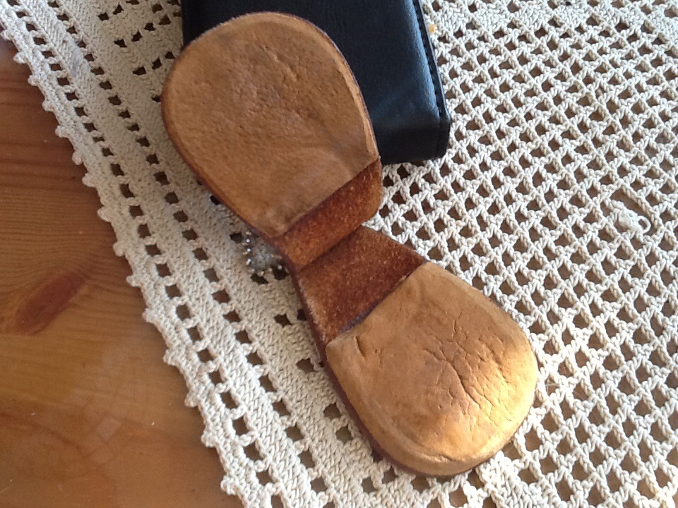 Da ich abends am WE nicht rumhämmern wollte( der Holzhammer da ist auch nur 2 cm lang...), hab ich das mit der Zange weichgeknetet, es ließ sich dann etwas formen, bzw dehnen, so ein bißchen wie Leder. daraus hab ich dann ne Mütze für eine Puppe genäht:D