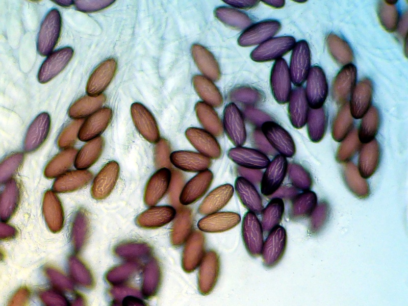 Die Gattung Sporomiella zeichnet sich durch Sporen aus, die aus mehreren Zellen bestehen. Ich finde immer nur solche mit vier Zellen. Dem Höhrensagen nach soll es auch welche mit 6,8 oder mehr Zellen geben. Offenbar jedoch nicht in dem von mir untersuchten Gebiet. Ich hab allerdings den Verdacht, dass das alles Fotomontagen sind. So wie bei den Speisemorcheln und Totentrompeten, die es in Wirklichkeit ja auch nicht gibt.:nana: