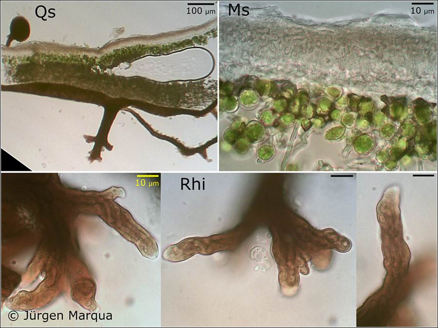 Querschnitt nurch die Rhizome einer Flechte (Parmelia sulcata)
