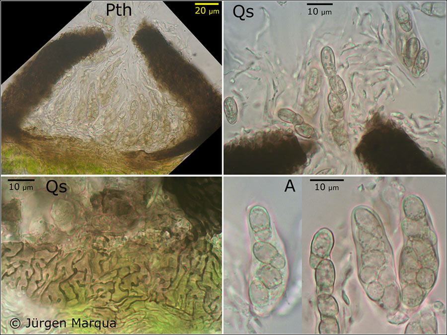 Querschnitt durch ein Pseudothecium von Hormotheca robertiani - einem Phytoparasiten auf den Blättern des Stinkenden Storchschnabels