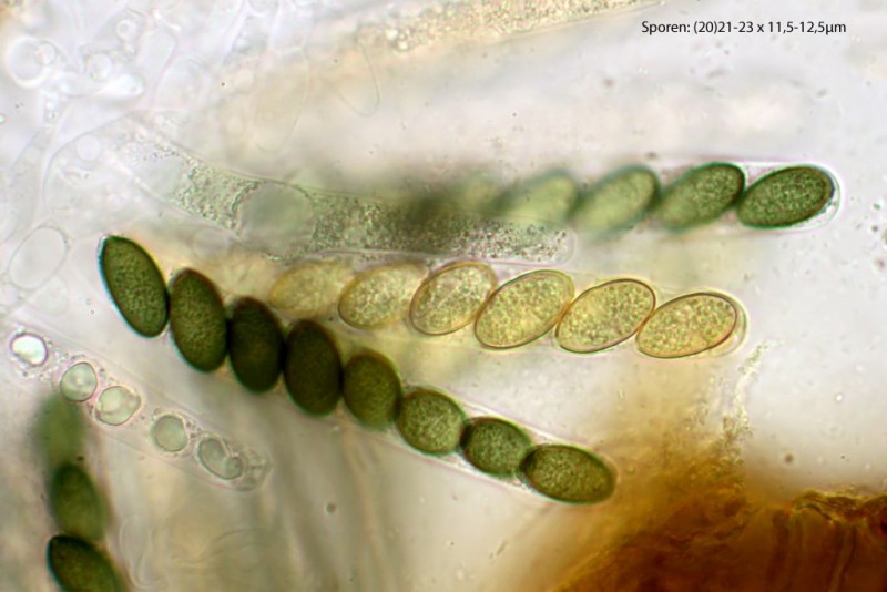 Da passen dann auch die Sporenmaße sowie die rundliche Form der Fruchtkörper.