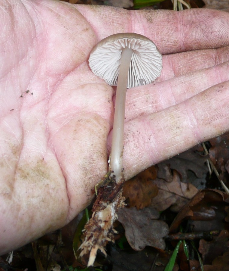 - mir sieht das wie ein Wurzelnder Schleimrübling aus, bei Bild 3 kam mir die Idee und so einige andere Merkmale würden auch passen. Stiel, helle Spitze, Hut, Lamellen ...