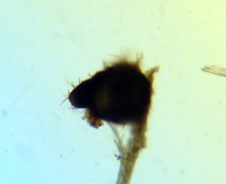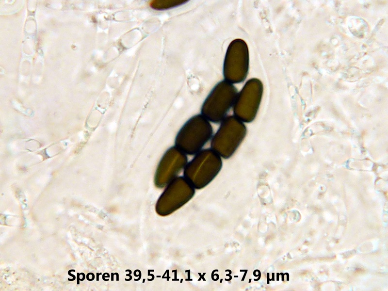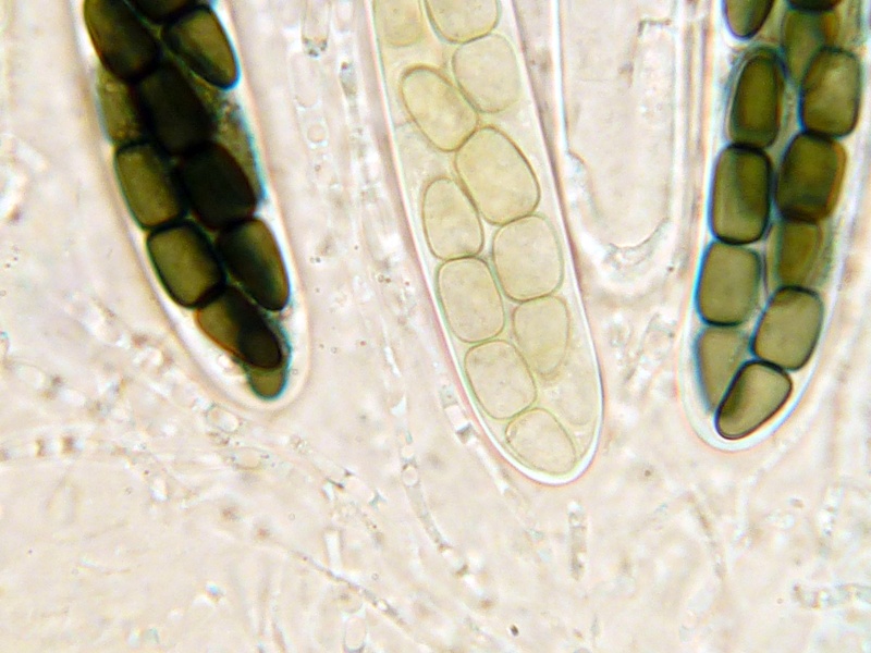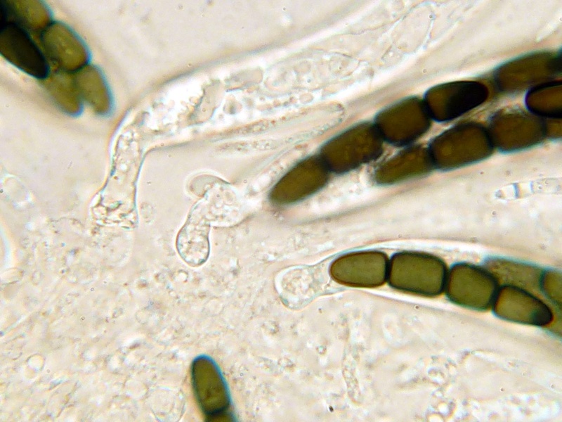 Das Perithecium ist jung durchsichtig, wird mit zunehmender Reife dunkler bis fast opak. Die Seten sind kürzer als bei A&C beschrieben, aber das ist wohl kein hartes Kriterium.