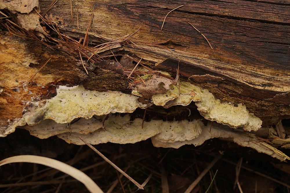 Allerdings kommt mir der andere Porling sehr bekannt vor. Ich denke mal, der hat eine gelatinöse Schicht zwischen Röhren und Hutfleisch und kann ganz gut mit Gloeoporus dichrous (Zweifarbiger Porling) angesprochen werden.