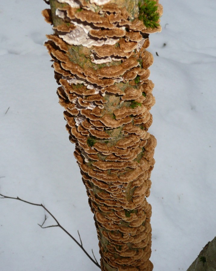 Was mir bei deinem Fund auffällt, ist daß der ja sehr wenig zweifarbig ist für einen "Zweifarbigen Schichtpilz".