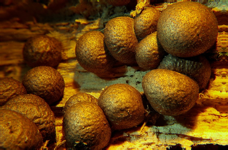 Hier etwas näher. Links erkennt man noch sehr gut den Hypothallus des Pseudoaethaliums von T. arachnoides.