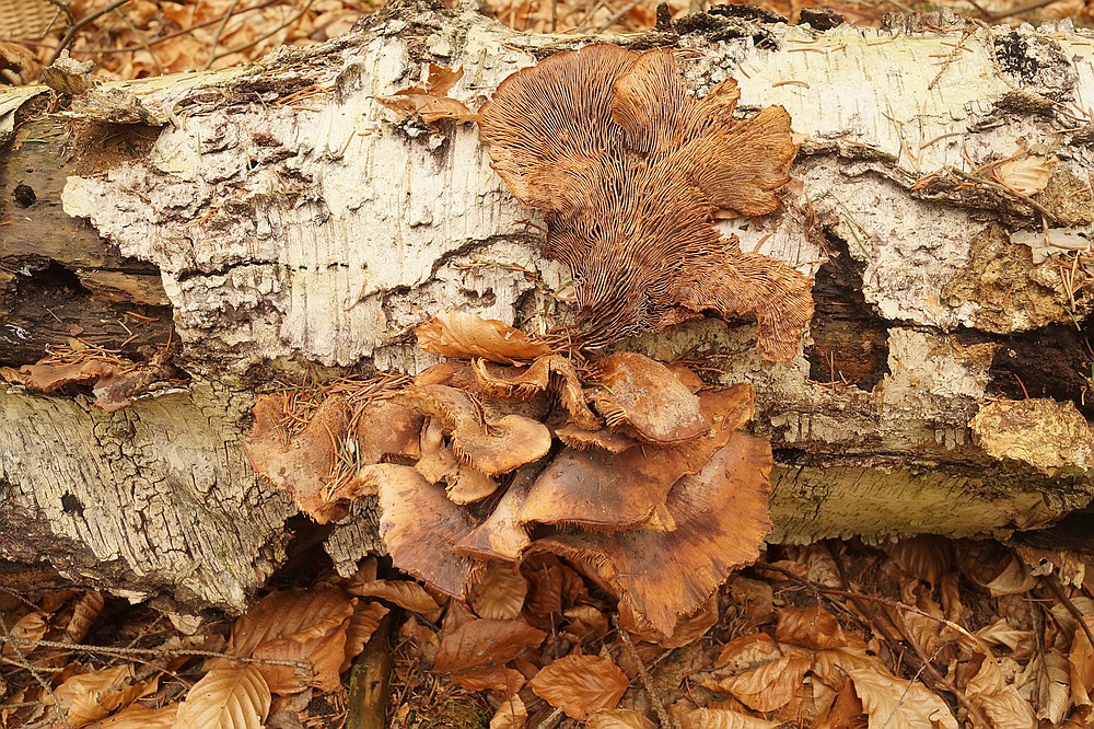 6. Kerstin sammelte ein paar Birkenporlinge, Piptoporus betulinus, für Tee. Dieser hier war ganz besonders, weil er seine Wuchsrichtung änderte