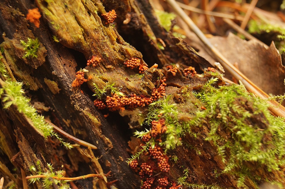 Den Schleimer würde ich vielleicht Metatrichia vesparium nennen. Ich gehe mal davon aus, dass der so aussieht, bevor er zum 'Wespennest', seinem deutschen Namen, wird. Edit: Ein Bild